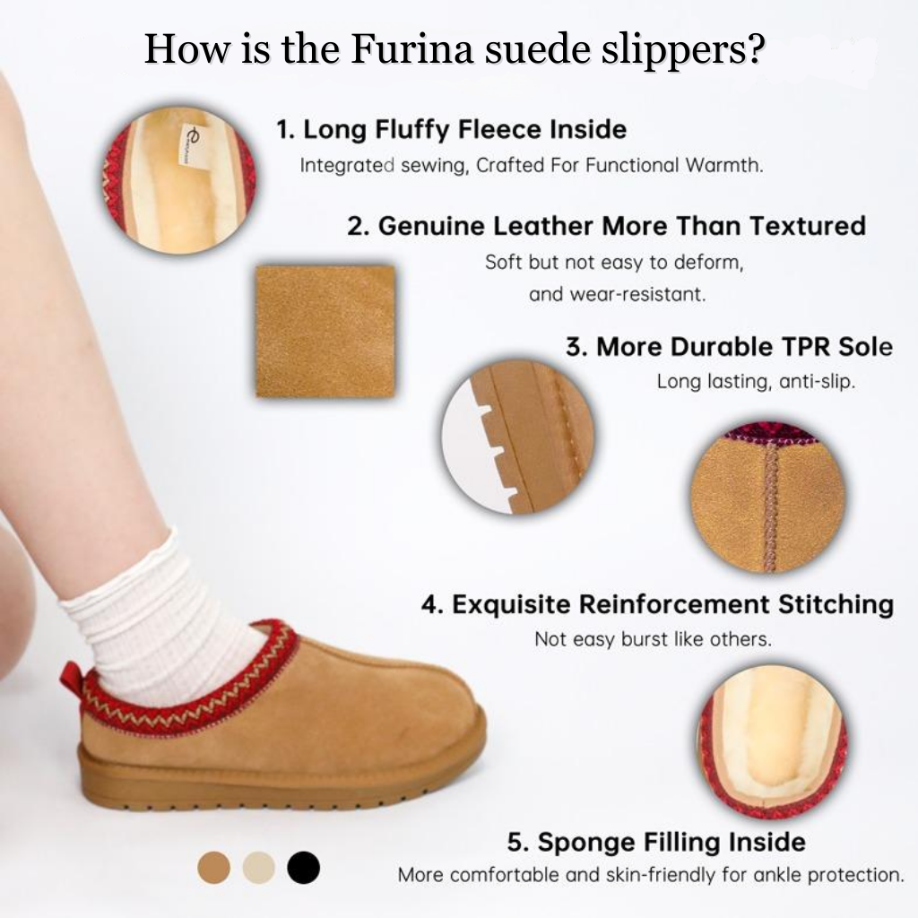 The suede naturally molds to your feet over time, and the fleece lining will compress slightly with wear. This gives you a custom, comfortable fit without losing shape.